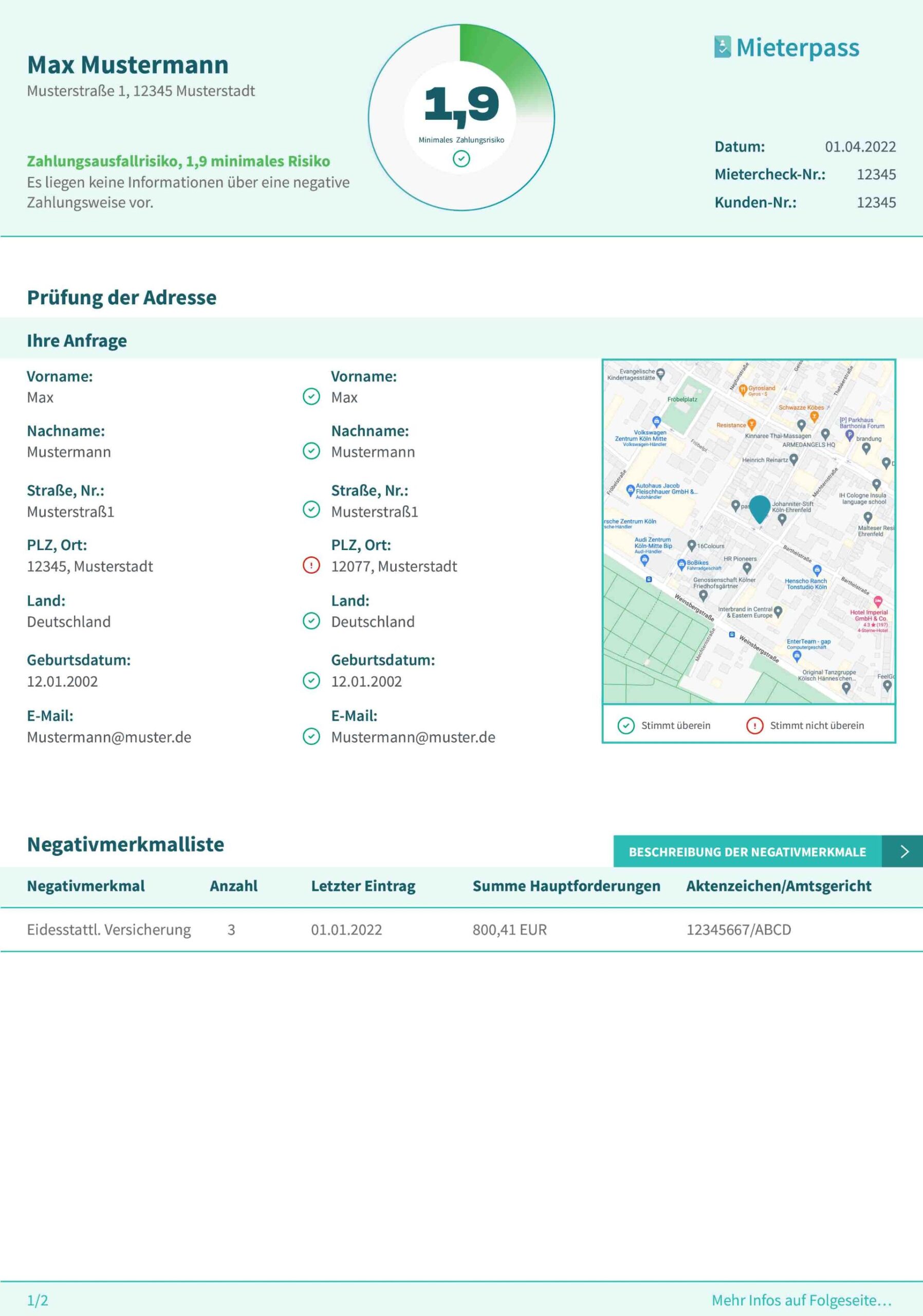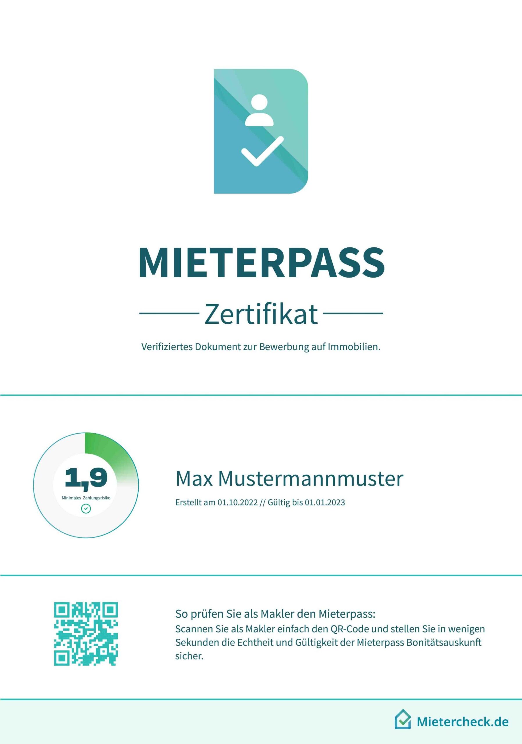 Sie sind an einer Mietwohnung oder einem zu vermietenden Wohnhaus interessiert? Dann punkten Sie doch ganz einfach bei dem Vermieter mit der Selbstauskunft und Ihrem tagesaktuellen Mieterpass, die Bonitätsprüfung für Mietinteressenten von Mietercheck.de